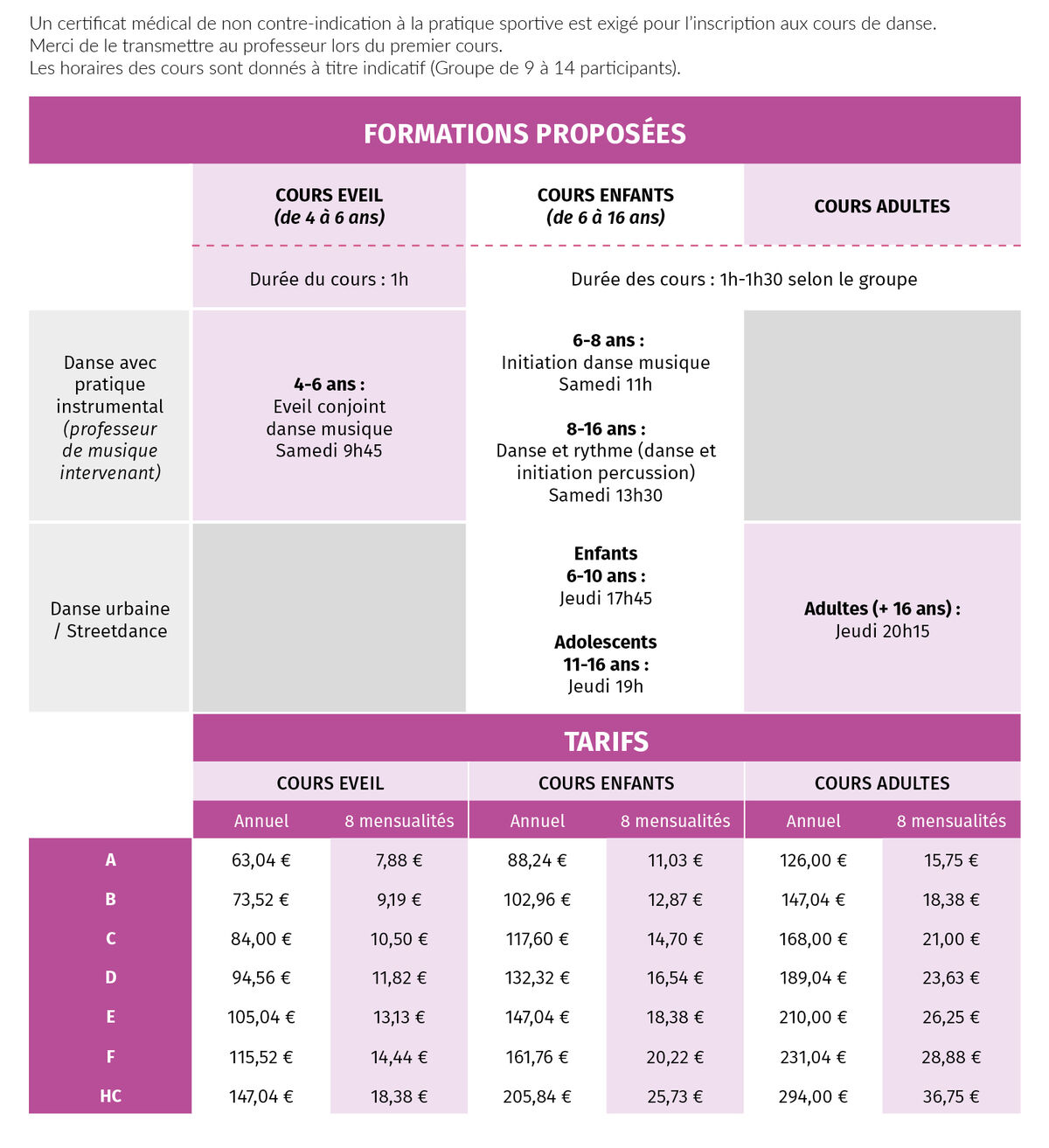 Kit d’inscription 2025-2026 à l’Ecole de Musique