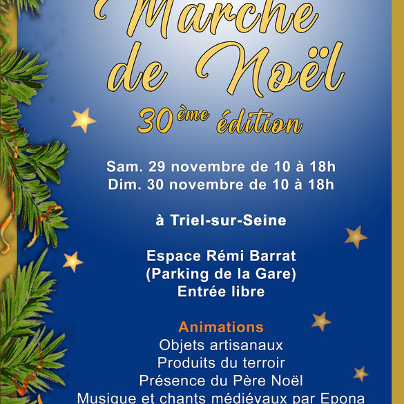 La magie de Noël revient à Triel les week-ends des 6-7, 13-14 et 20-21 décembre, place Philippe Prévost. Au programme : plus de 150 exposants, de nombreuses animations, la patinoire, rencontre avec le Père Noël, ateliers créatifs, balades en calèche... Le tout dans l'ambiance chaleureuse des fêtes de fin d'année !