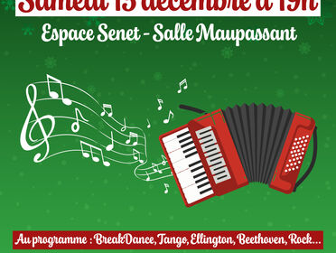 L'école municipale de Musique et de Danse vous propose un concert samedi 13 décembre à partir de 19h à l'espace Senet. Entrée libre.