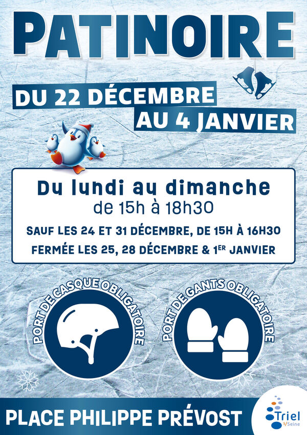 Les vacances de Noël à Triel-sur-Seine signifient le grand retour de la patinoire ! Rendez-vous du 22 décembre au 4 janvier place Philippe Prévost.
