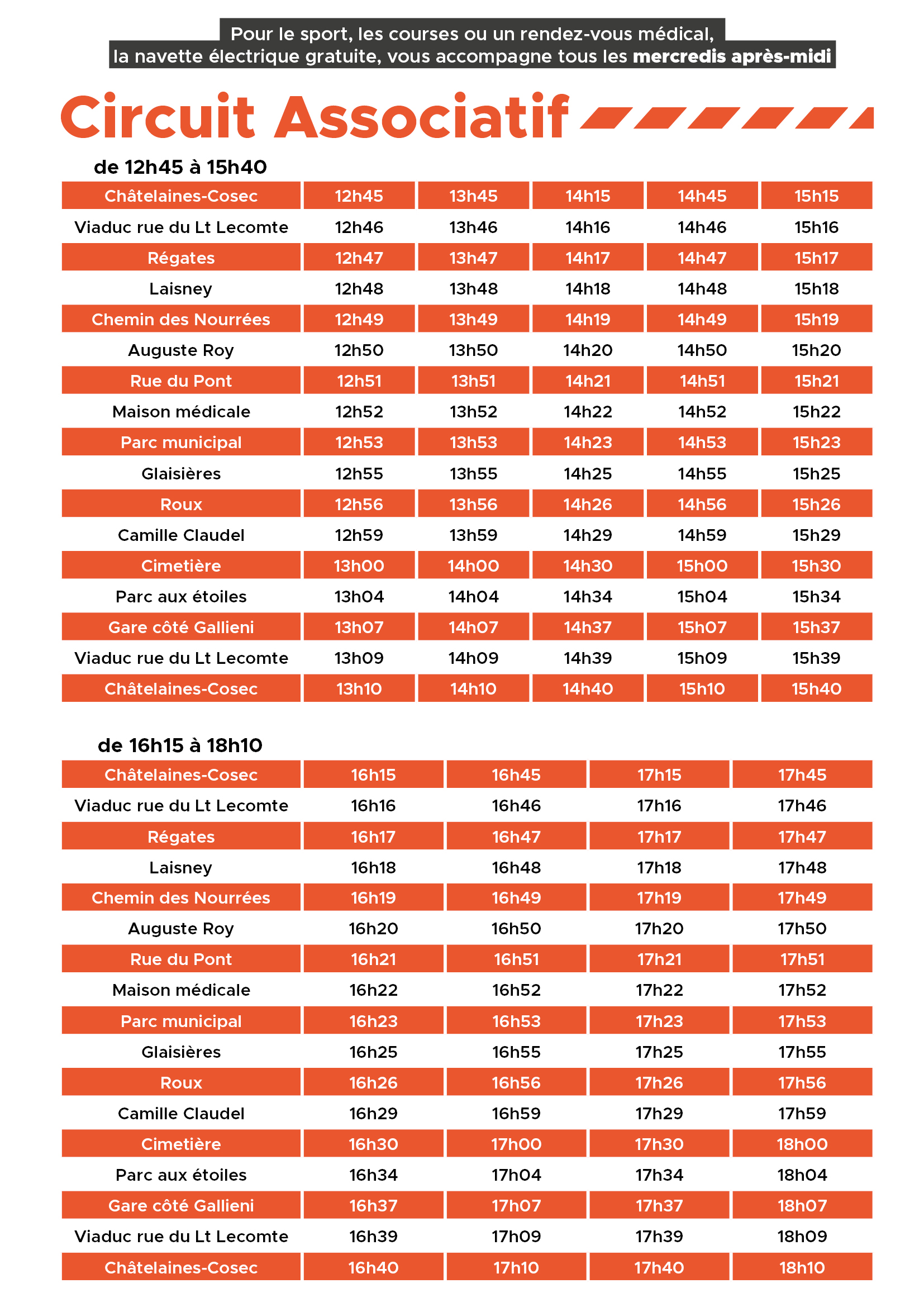 Exclusivement le mercredi, il permet aux adhérents des associations de se rendre sur les principaux lieux d'activités à travers la ville (Cosec, Parc aux Etoiles, Parc municipal...).