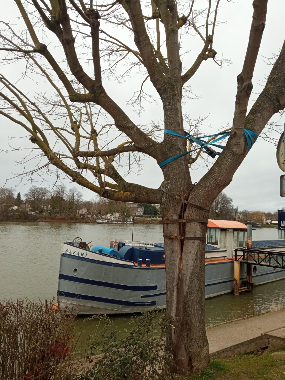 Toutes les solutions alternatives aux abattages sont envisagées avant de recourir à ce moyen (exemple de l'arbre sanglé en bords de Seine, en face de la sortie du parking Auchan).
