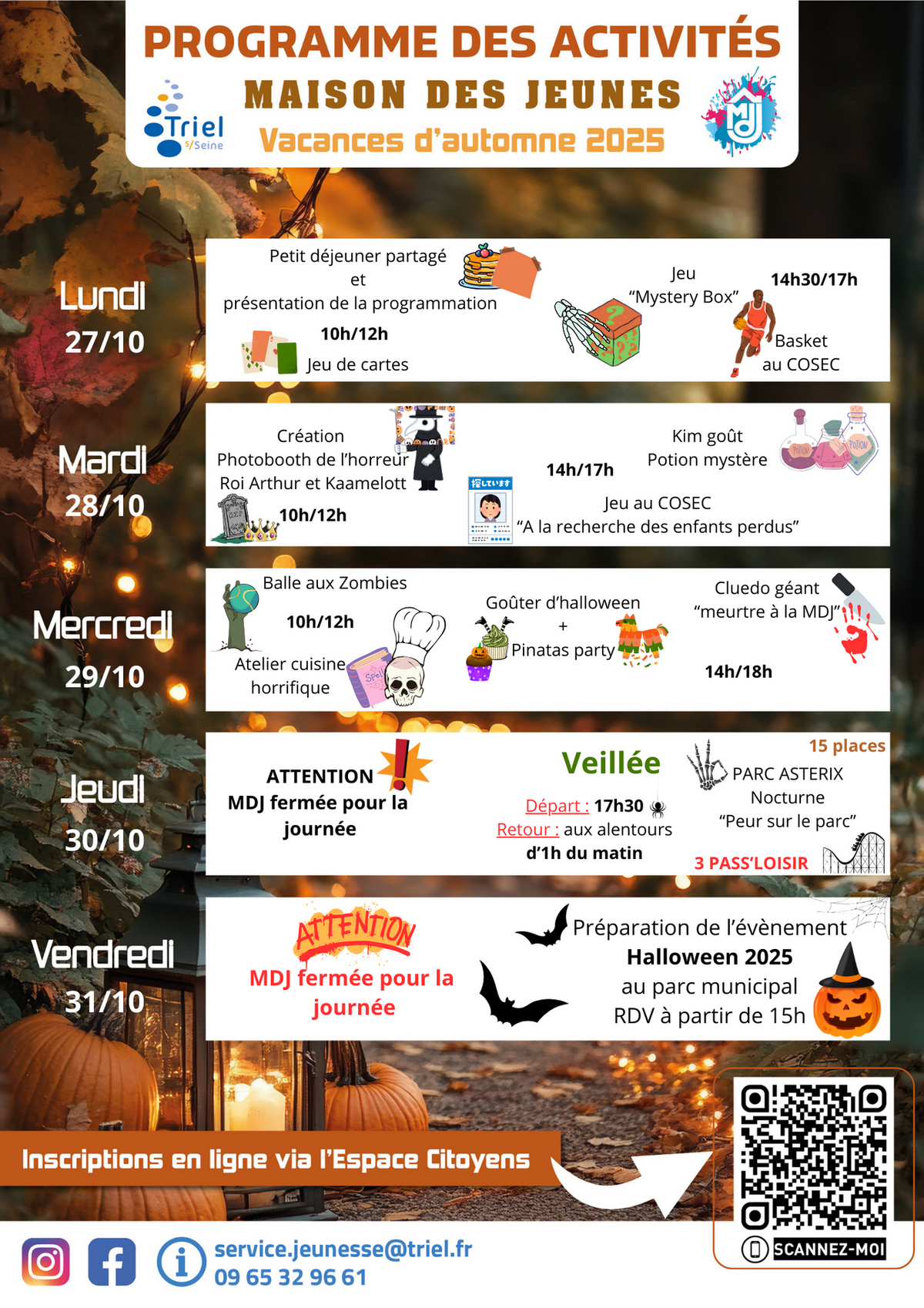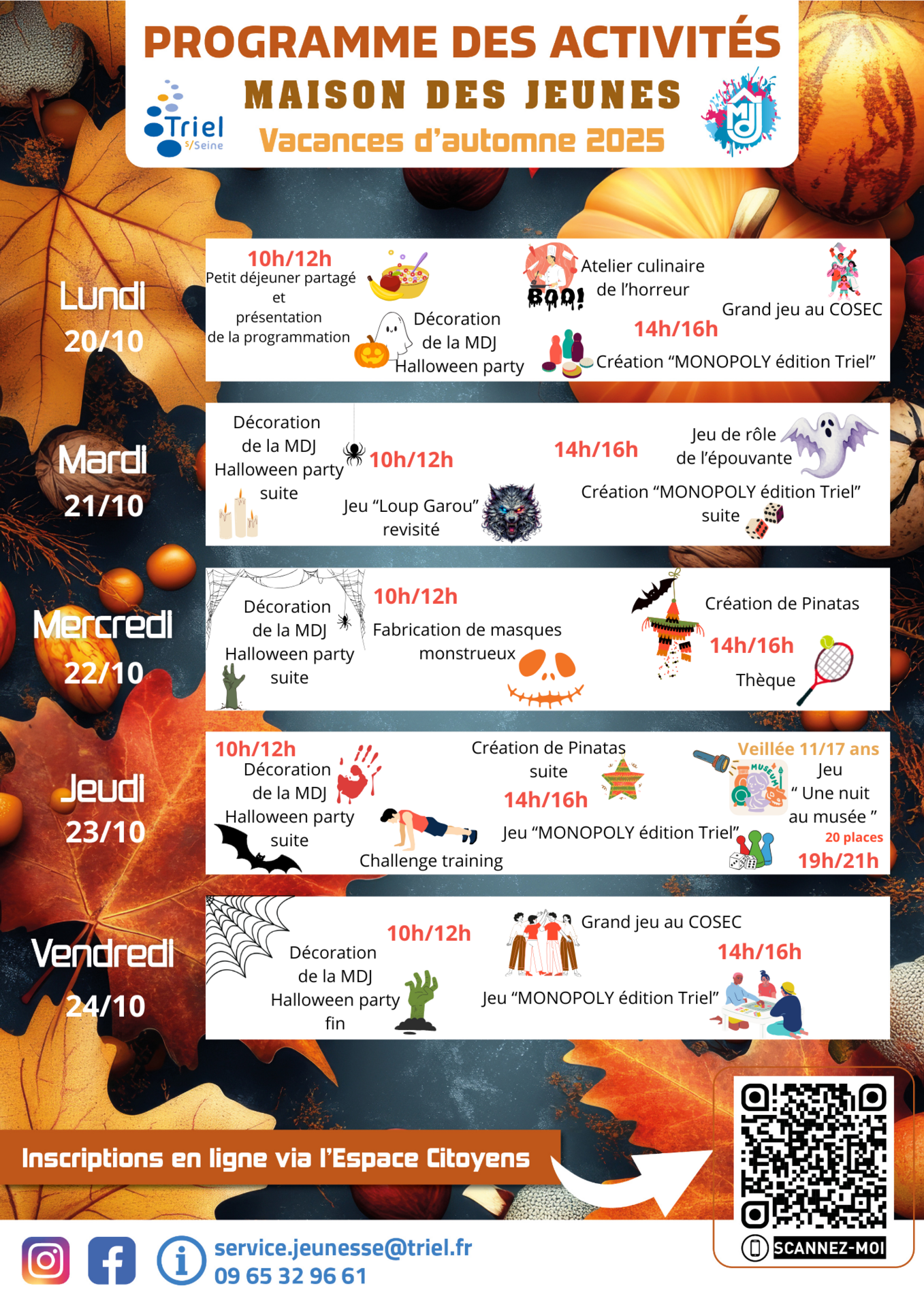 Renseignements auprès de la Maison des Jeunes : service.jeunesse@triel.fr - 09 65 32 96 61.