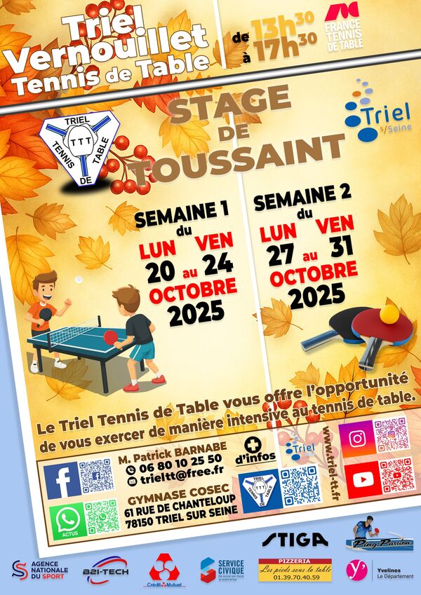 Triel Tennis de Table organise un stage pendant les vacances d'automne.