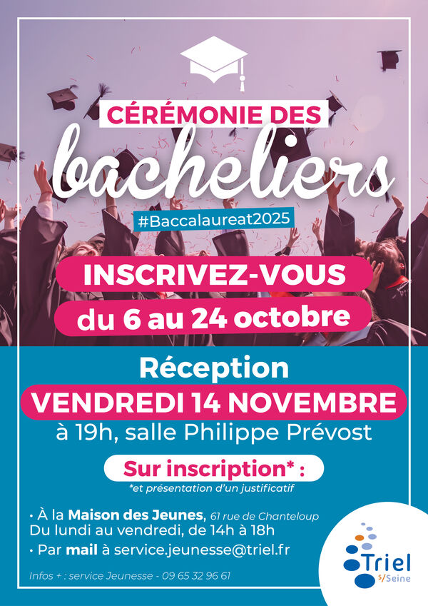 Vous avez obtenu le baccalauréat avec mention cette année ? Félicitations ! L'équipe municipale souhaite vous récompenser lors d'une réception qui aura lieu vendredi 14 novembre, de 19h à 20h30, salle Philippe Prévost.