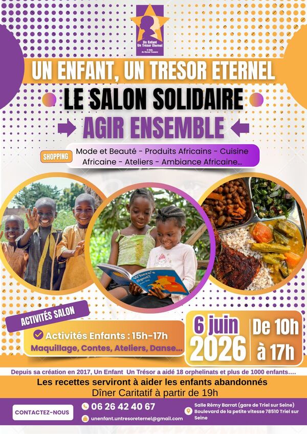 L'association "Un enfant, un trésor éternel" organise une journée caritative le samedi 6 juin de 10h à 17h à l'espace Rémi Barrat.
