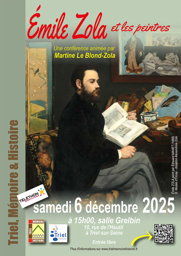 Conférence Triel, Mémoire & Histoire "Zola et les peintres" le samedi 6 décembre à 15h, salle Grelbin.
