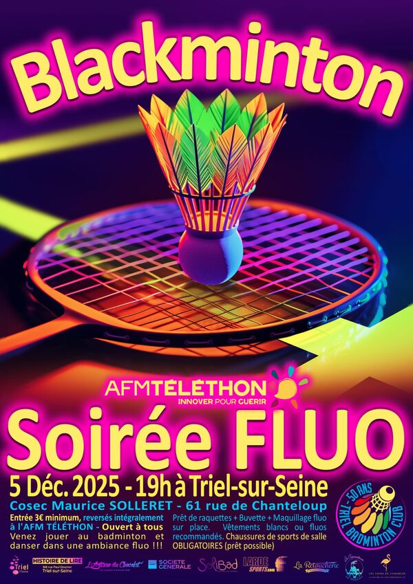 Ouverture du Téléthon 2025 avec une soirée blackminton le vendredi 5 décembre à 19h au COSEC.